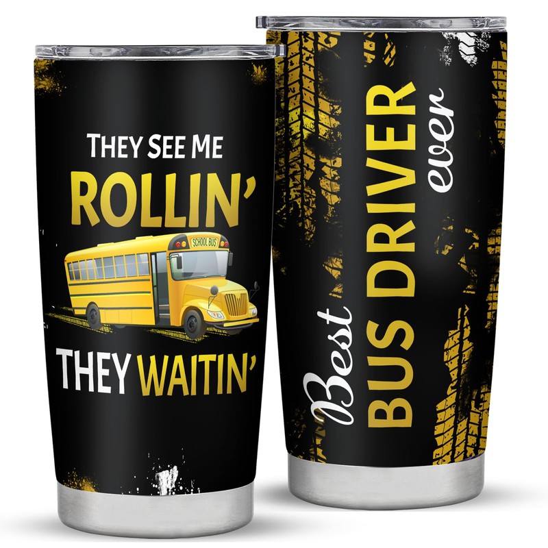 - Funny School Bus Driver Gifts - The bus driver tumbler with school bus design and "They see me rolling they waiting" words looks funny and eye-catching, the appearance will not fade, very durable.