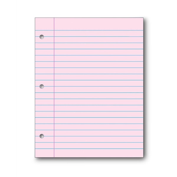 School Smart 3-Hole Punched Filler Paper, 8-1/2 x 11 Inches, Pink, 100 Sheets - 087155