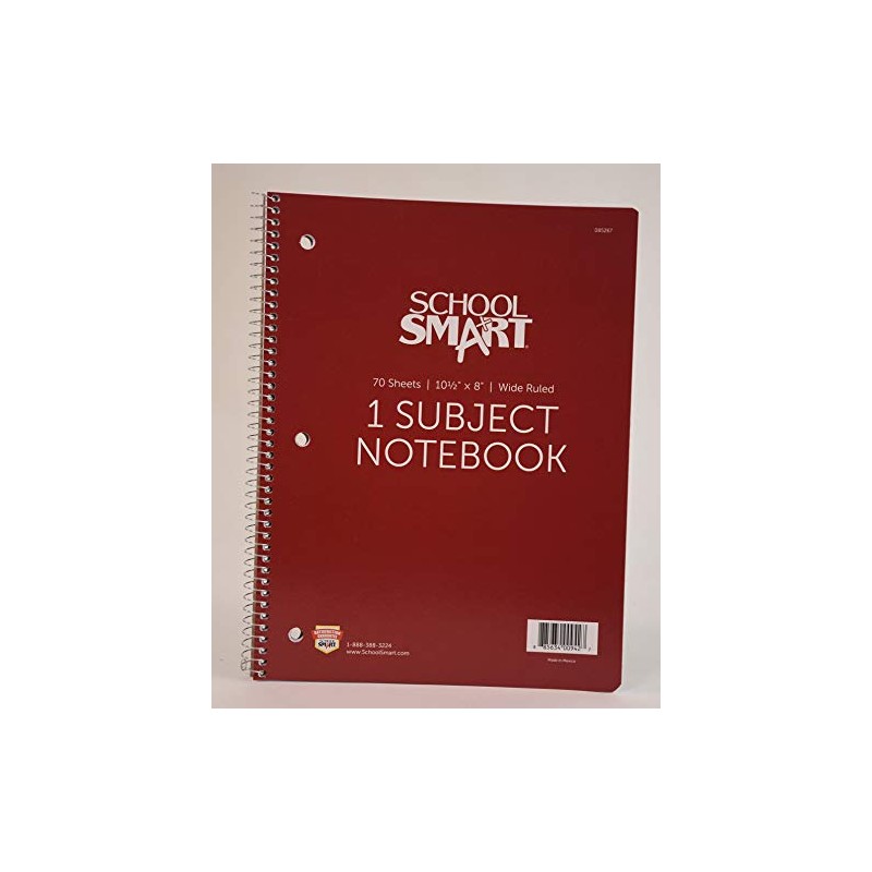 School Smart Spiral Wide Ruled Notebook, 8 x 10-1/2 Inches