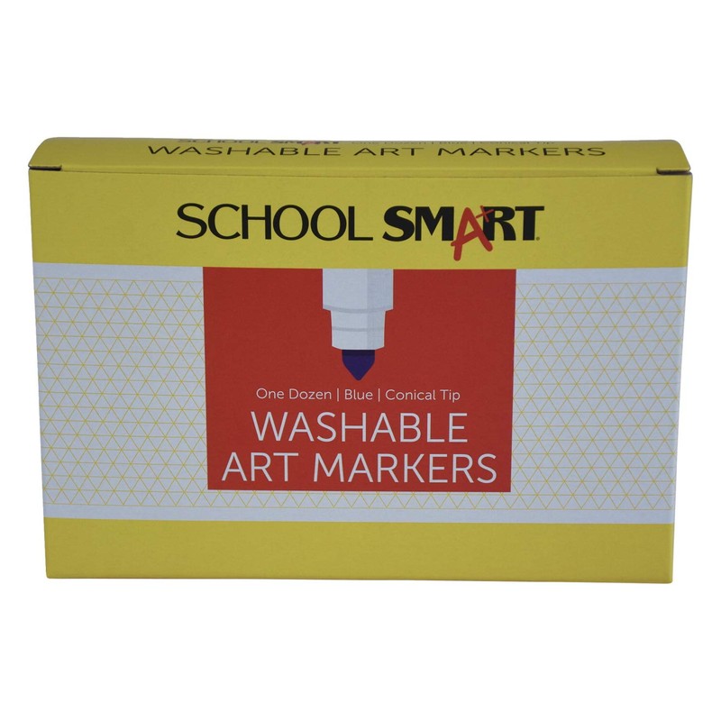 School Smart Washable Art Markers, Conical Tip, Blue, Pack of 12