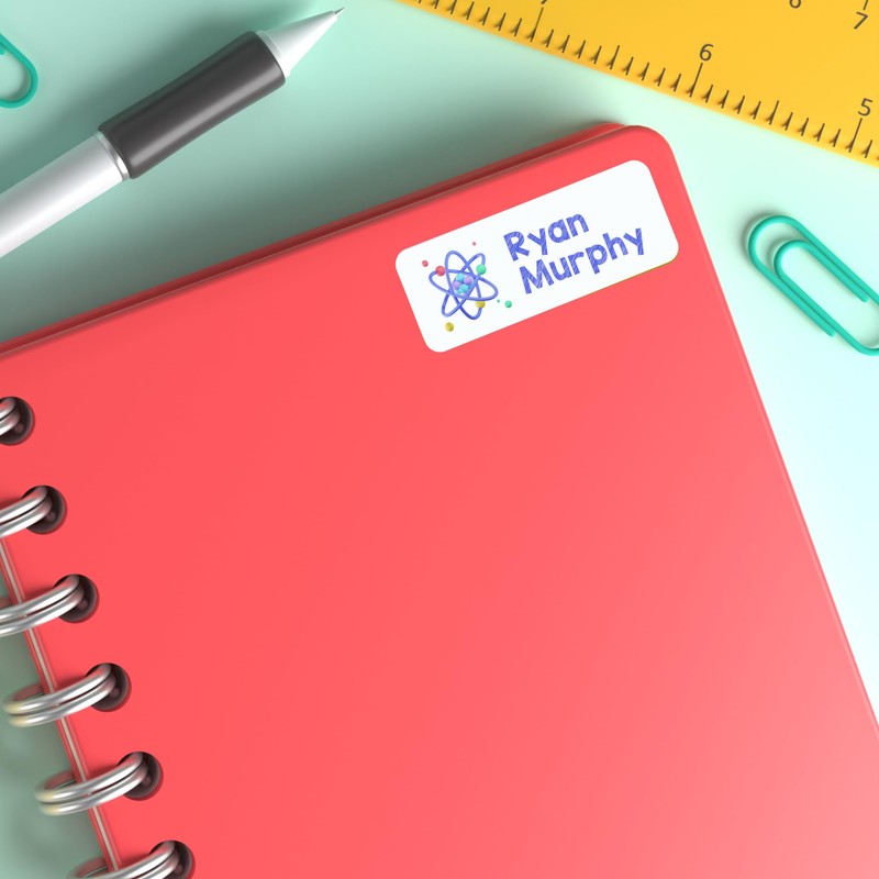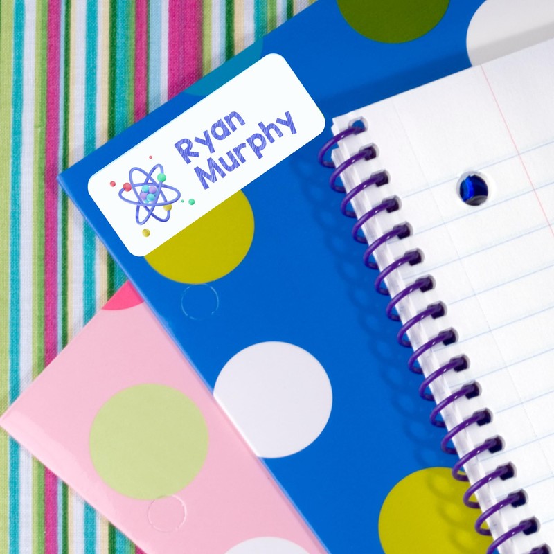 School Supply Labels | 30 Personalized Stickers | Back to School Name Labels (Atom)