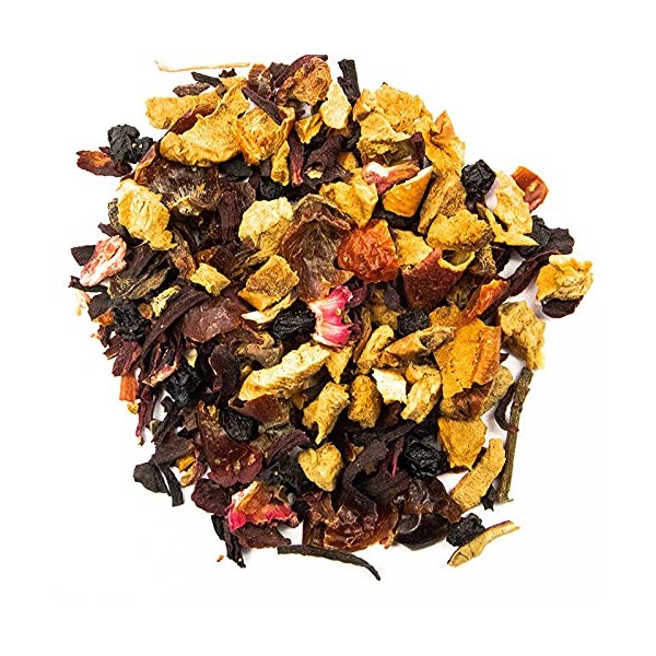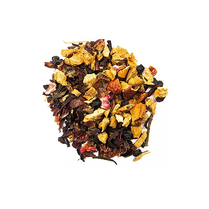 - Refined with apple pieces, rose hip, hibiscus flowers, elderberries and vanilla.
