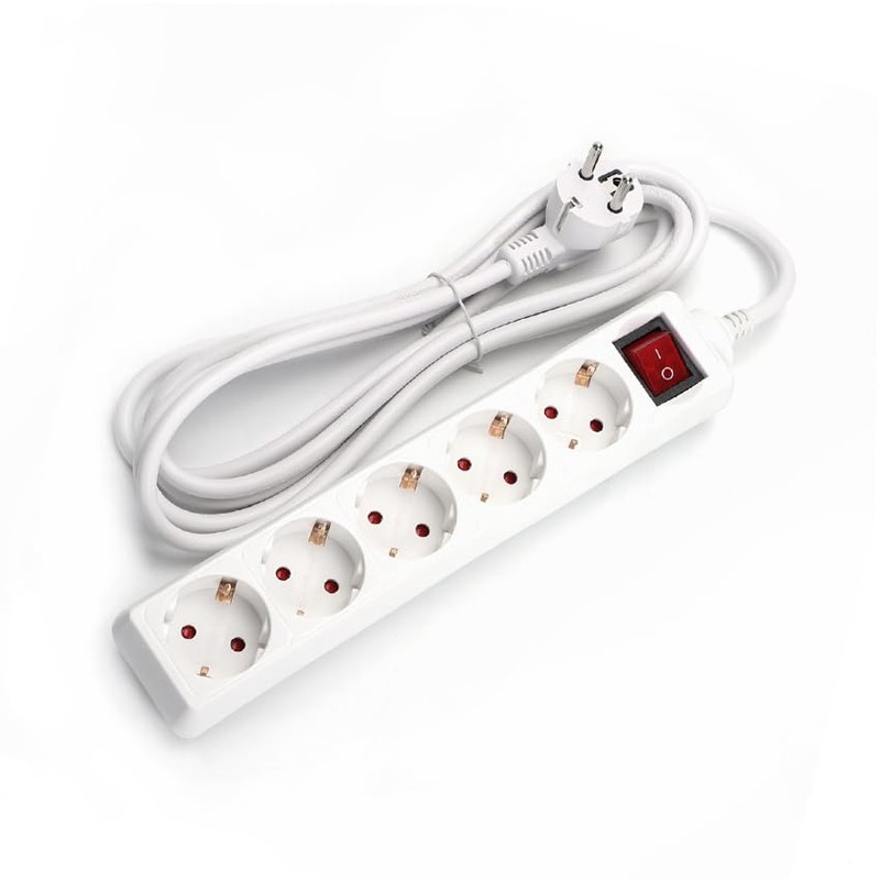 - Schuko Power Strip with 5 Sockets with Switch, Standard Power Cable, Ideal for Connecting Multiple Devices at the Same Time