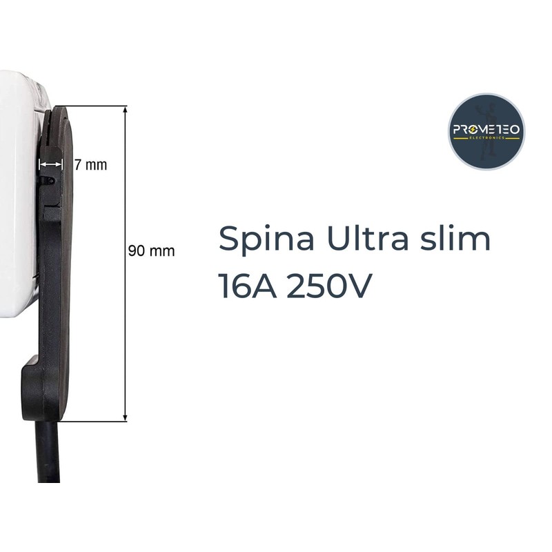 - Features: projection only 8 mm from the wall. Schuko plug 16 A supports a max. 3 x 1.5 mm cable