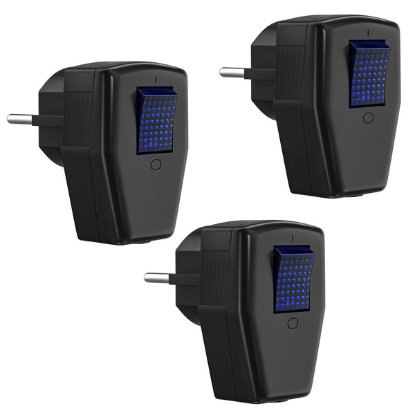 Schuko Plug with Switch, Protective Contact Plug IP20 250V (16A), Black, Pack of 3