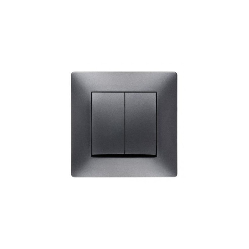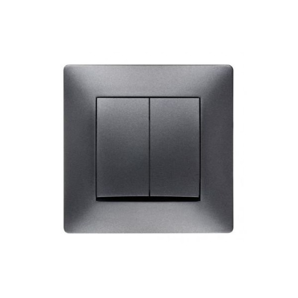 Schuko Socket Off Switch Button Light Switch Volante Anthracite Insert + Frame + Cover (Double On/Off Switch 2611-08)