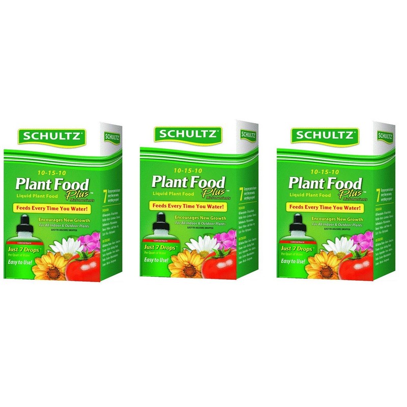 - This is a set of 3 Schultz All Purpose 10-15-10 Plant Food Plus, 4-Ounce