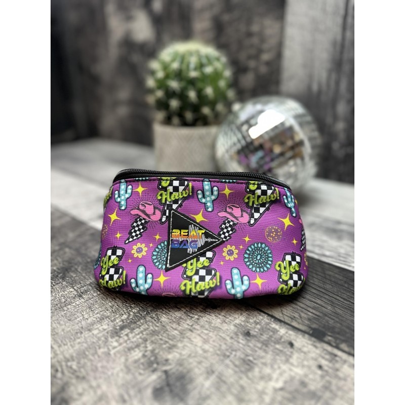 Schulz EquineThe Beat BagPommel BagListening to music has never been more convenient!Blue tooth connectionWhether you are riding your horse, out on the trail, or doing other outdoor activites, the Beat Bag is a fun way to listen to your music hands free! Insulated and padded to protect anything stored inside during use.USB Charger included Two adjustable nylon straps make attachment easy! Multiple patterns now available!SEBEATBAGThe ultimate riding accessory is here!!!! The Schulz Equine Beat Bag is a saddle pouch equipped with 2 rechargeable blue tooth speakers ready to play your music or to amplify your coaches voice while riding. The beat bag is insulated front and back to keep your items safe while riding, has 2 nylon straps with clips to attach to your saddle pommel, 2 clips to clip to your belt loops or english saddle. The bluetooth speakers easily connect to your device by selecting "Beat Bag" in the blue tooth options, and comes with USB cord to recharge the speakers. Use while riding, biking or running or any other activity that needs a beat!!! SEBEATBAG