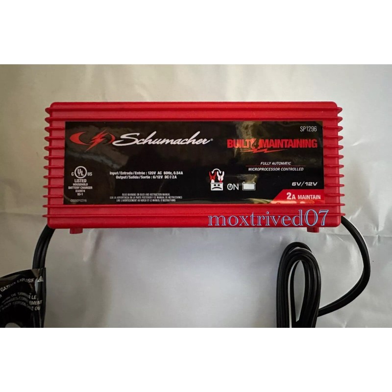 When you need tools that you can rely on, Schumacher® Electric is the brand mechanics trust. Designed to keep your 6V and 12V batteries in top condition, the Schumacher® SP1296 2A 6V/12V Fully Automatic Battery Charger and Maintainer is ideal for use with motorcycle, power sport, car, and boat batteries. You can also use the SP1296 to keep your stored and infrequently used batteries fully charged and healthy all year long. As a fully automatic charger and maintainer, the SP1296 also employs multi-stage charging, float mode monitoring, auto voltage detection, bad battery detection, and reverse hook-up protection. Other features include a charging status LED indicator and color-coded, non-sparking clamps and ring connectors. The SP1296 is compatible with 6V and 12V standard, AGM, and deep-cycle batteries.