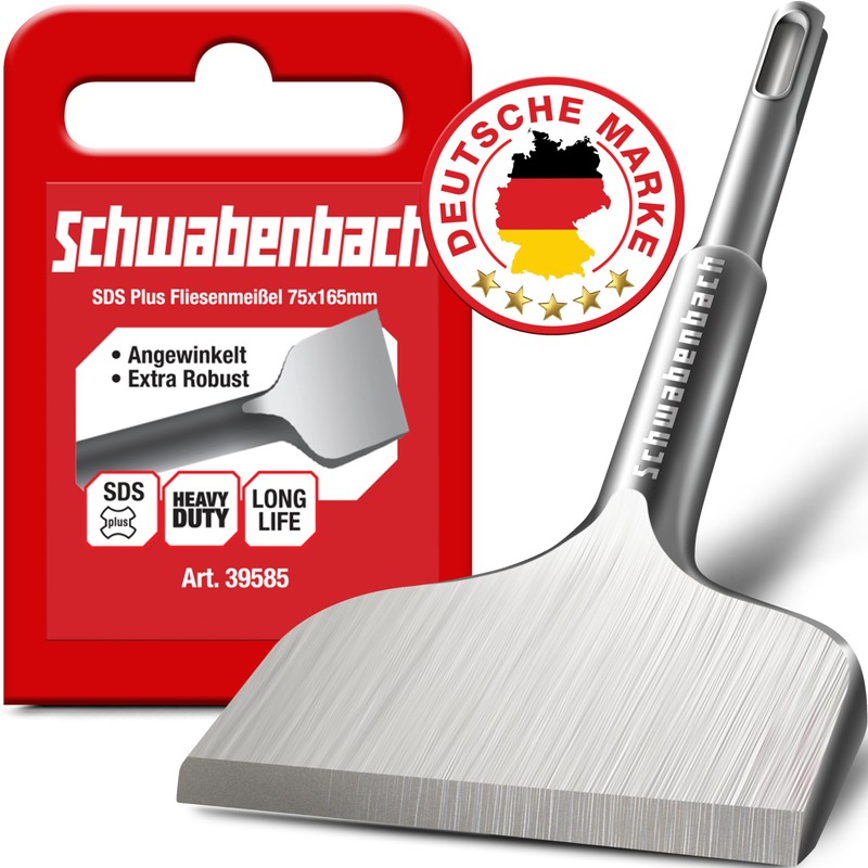 SCHWABENBACH ® SDS Plus Tile Chisel 75 x 165 mm - Ideal for Removing Plaster - Tile Removal Tool - Flat Chisel - Extra Hardened Tip - Wall Quick Removal with Hammer Drill Chisel