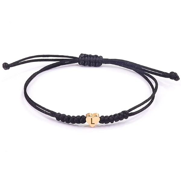 Schwarzes Initialarmband Initial A-Z Charm Buchstabenarmbänder für Frauen Männer Seil geflochtene Initialarmbänder Herz Brief gewebtes Armband Graduation Mothers Day Geschenke (L)