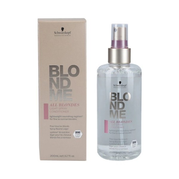Nourish your blonde hair with the Schwarzkopf BlondMe SprayConditioner. This lightweight nourishing conditioner is formulated for thosewith fine to normal blonde hair. Formulated with Schwarzkopf's Bond creationtechnology that creates a 3-dimensional network inside the hair fiber toconnect the inner bonds strengthening the hair fiber from within.