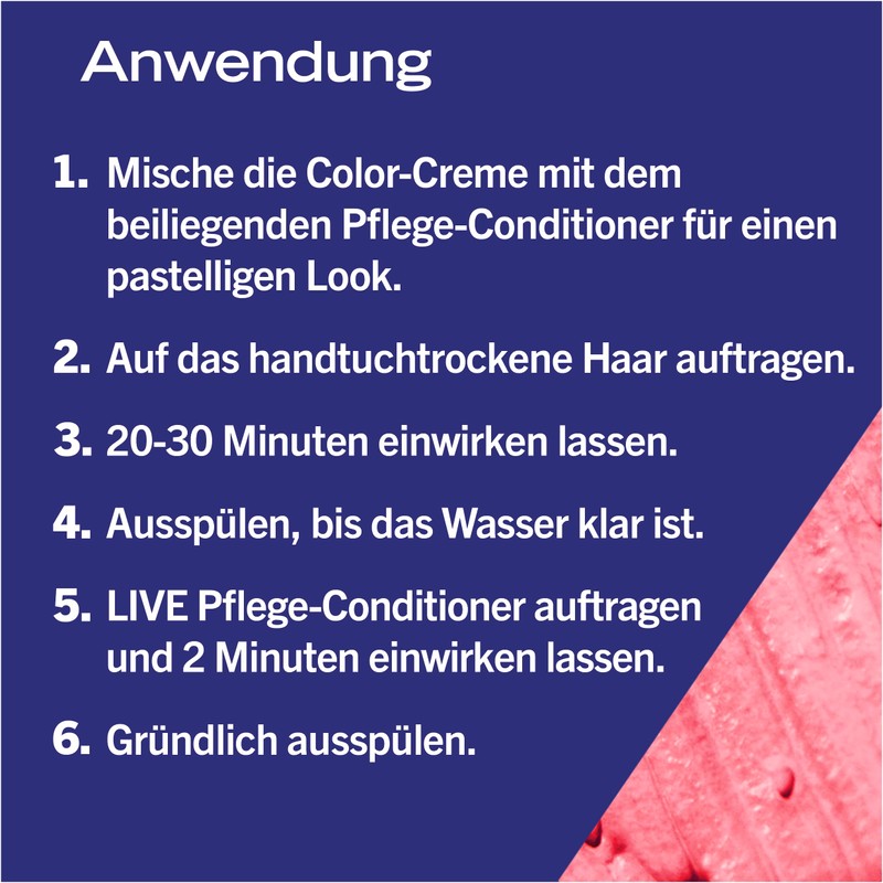 - 1 product - 2 results - For a bright colour result, apply the tint directly to your hair, for a pastel look, mix the colour cream with the enclosed conditioner
