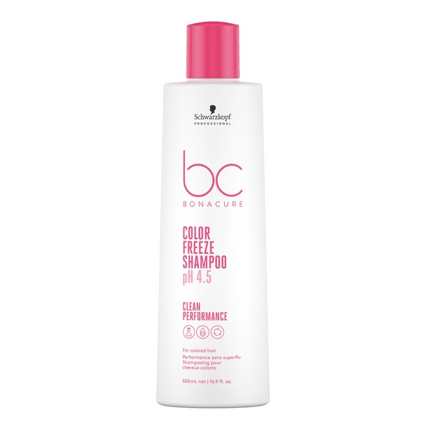 Schwarzkopf Professional BC Clean Performance Color Freeze Shampoo 250ml is a gentle shampoo that brings hair to its optimal pH 4.5 level to perfectly freeze colour pigments. This shampoo is specially formulated for colour treated hair, gently yet effectively cleansing it while bringing it back to its optimal pH level. It prevents colour fading and helps to protect hair structure, leaving hair looking vibrant and healthy. What are the benefits and features of Schwarzkopf Professional BC Clean Performance Color Freeze Shampoo 250ml? Gentle yet effective cleanses coloured hair. Brings hair back to its optimal pH level. Prevents colour fading. Helps to protect hair structure. Who is Schwarzkopf Professional BC Clean Performance Color Freeze Shampoo 250ml for? This shampoo is perfect for those with colour treated hair who want to maintain their hair's vibrancy and health.