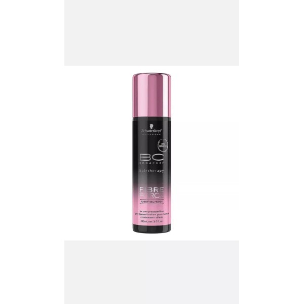 Schwarzkopf BC Bonacure Fibre Force Fortifying Primer 6.7oz (200ml) is an instantly revitalizing leave-in conditioner for the daily care of seriously damaged and over-processed hair. It works to strengthen hair fibres, seal the hair surface and add shine. It does this by utilising its patented Bond Connector Technology which deeply reconstructs and seals each individual hair strand restoring it to virgin hair quality whilst simultaneously making it 10x more resistance to breakage. The result is healthy hair with a new lease of life! Directions of use: Shake well before applying. Apply to the mid-lengths and ends of towel-dried hair. Comb through and leave in.