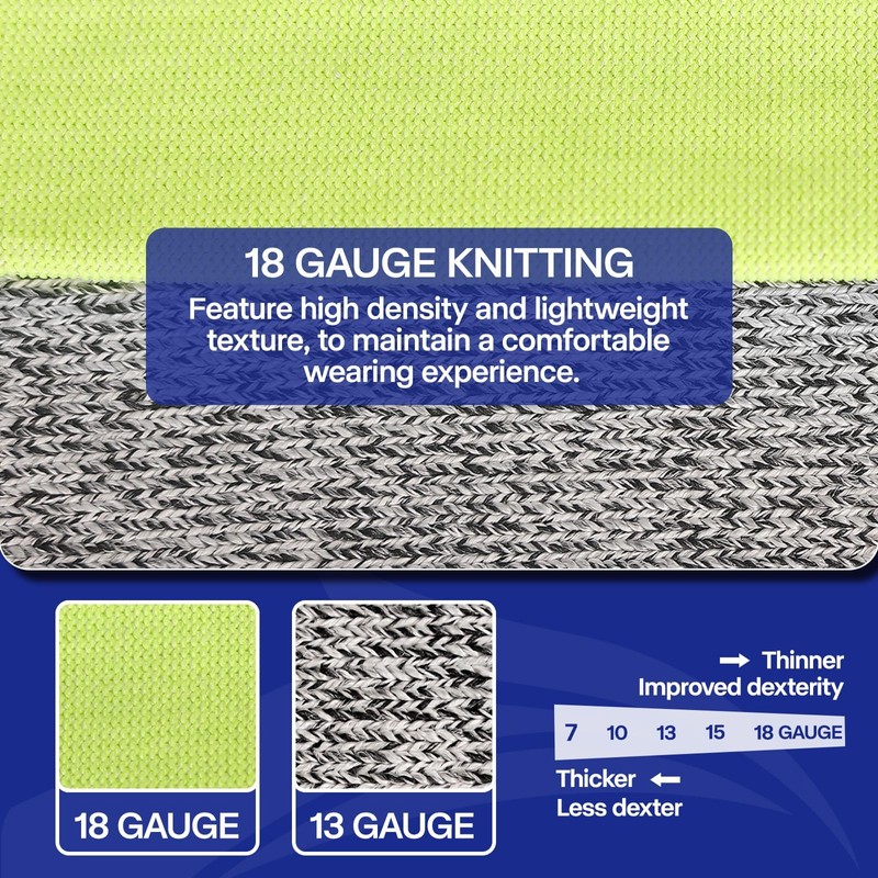 - 【ULTRA-LIGHTWEIGHT】- A higher-gauge sleeve uses thinner, finer yarn and has more stitches knitted per inch, which creates a tighter knit, so an 18-gauge is lighter than a lower gauge sleeve. These sleeves have higher cutting resistance and ensure a feather-light second skin feeling.