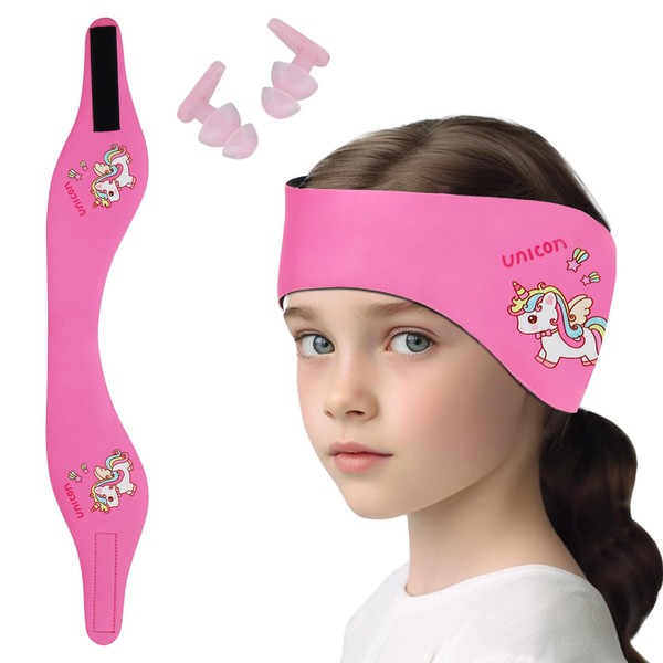 Schwimmen Stirnband Kinder,Neopren Schwimmband,Kopfband Haarband mit Hohe Elastizität und Klettverschluss Ohrenschutz Band Ohren Schutz Wasserdichtes Kopfband für Kinder (Rosa-3, L)
