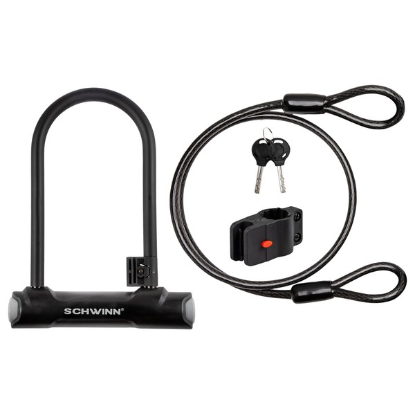 Schwinn Bike Max U-Lock with Double Crimped Cable, 2 Keys Included, 4 feet x 10mm Anti Theft Bicycle Lock, Security Level 5