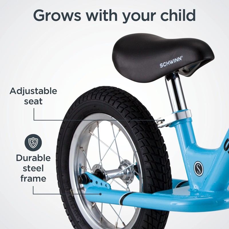 Schwinn Balance Bike, 12 Inch Bike for Kids Ages 2-4, Durable Steel Frame, Padded Seat, Cushioned Grips, Adjustable Seat Grows with your Child, No Training Wheels Needed, Training Bicycle for Kids
