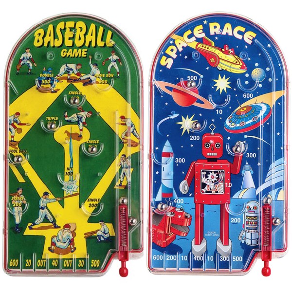 • Gift Set Bundle Includes 2 Different Classic Pinball Games from Schylling - Space Race & Home Run! Baseball!
