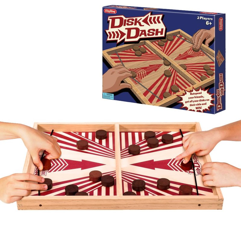 - Players use the elastic bands to launch the disks towards the gateway and through to the other side. Players try to dash their disks as fast as possible and at the same time.