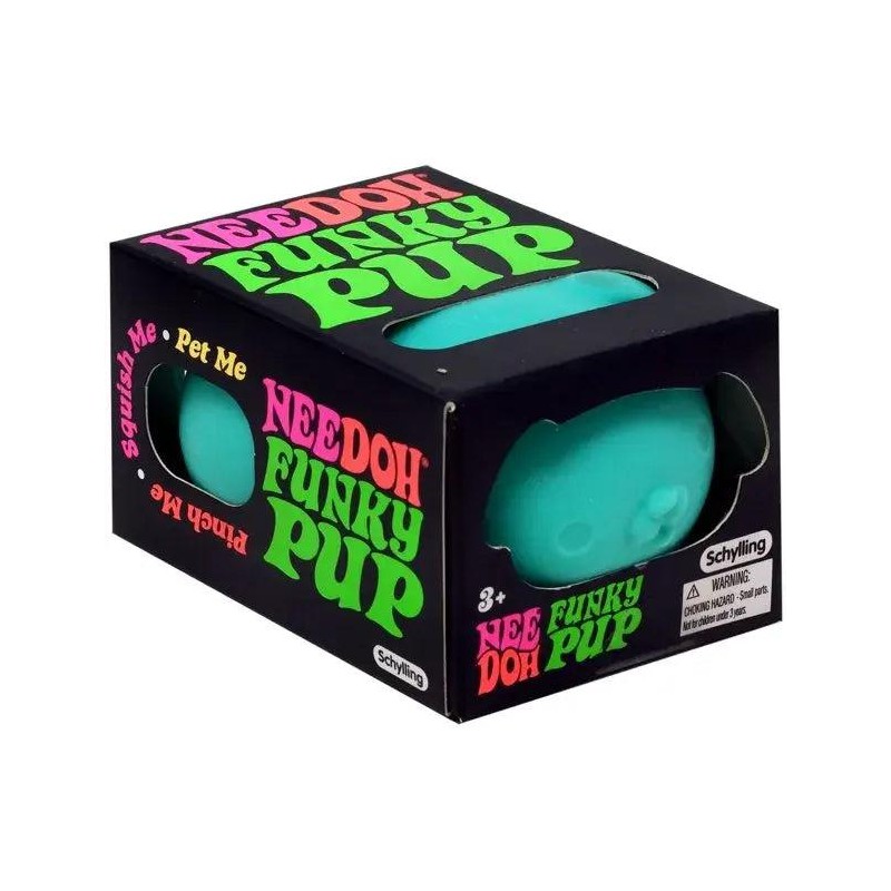 - What are the dimensions of the NeeDoh Funky Pup?Each Funky Pup measures approximately 2 inches in diameter, making it easy to hold and squeeze.