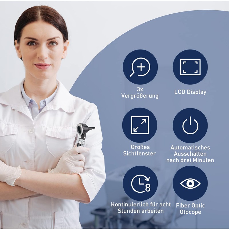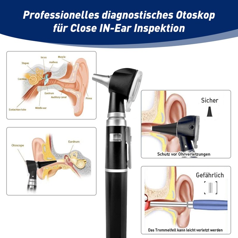 SCIAN New Otoscope with Light, Professional Diagnostic Tool with Fibre Optic Lighting, 3x Magnification, 4 Speculum Tips, Medical Ear Tool for Children, Adults, Pets (Aterrimus)