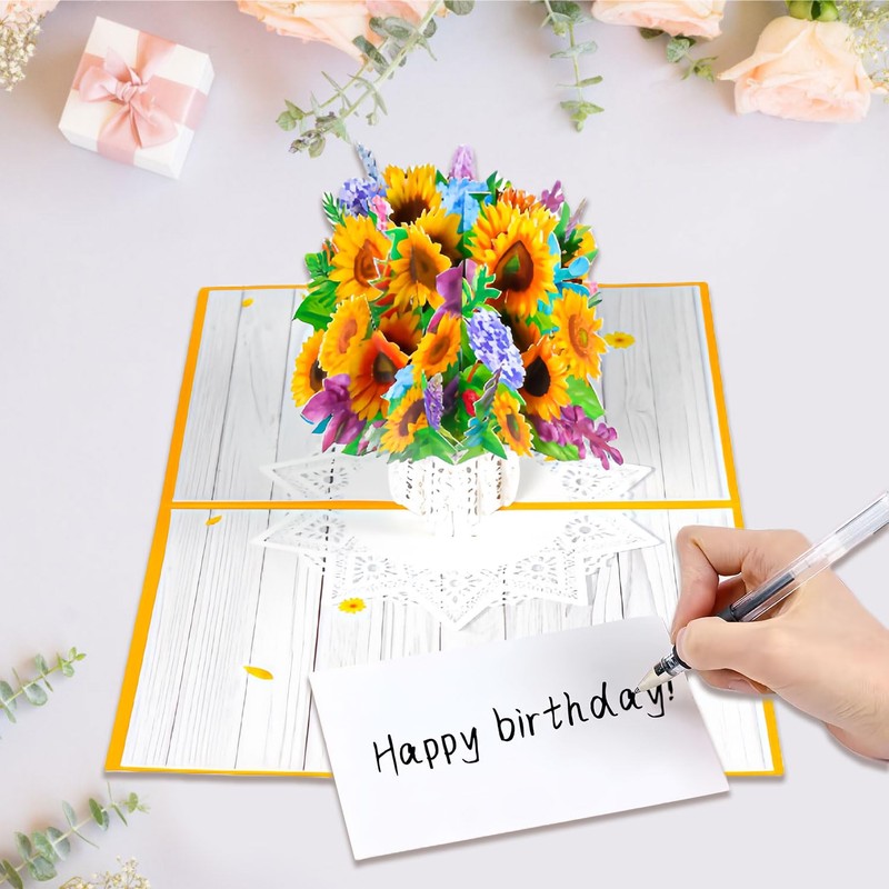 scicent Pop Up Card Birthday Sunflower Mother's Day Card Birthday Card Woman Valentine's Day Cards with Envelope Wedding Card 3D Greeting Romantic Love Card Popup Flower Card - 31910