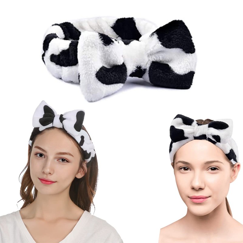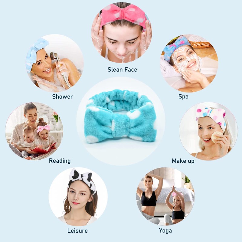 scicent Spa Headband 2 Pieces Bow Hair Bands Makeup Headbands Women Coral Fleece Elastic Headband Washing Face Shower Sports Beauty Skin Care - 13010