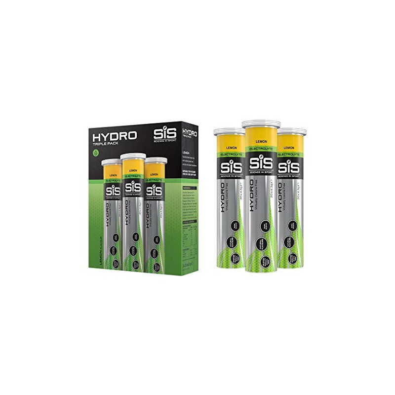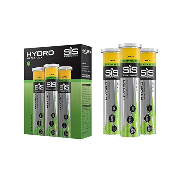 Science In Sport Hydro Hydration Tablets, Gluten-Free, Zero Sugar, Lemon Flavour Plus Electrolytes, 20 Effervescent Tablets per Bottle (3 Bottles)
