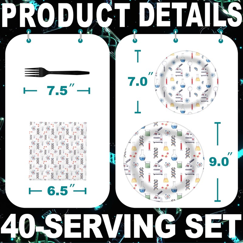 - Durable and Sturdy: Made from high-quality, food-safe paper, these science party plates and napkins are built to handle all kinds of party snacks and treats, from pizza to cupcakes, while keeping the lab vibes going strong.