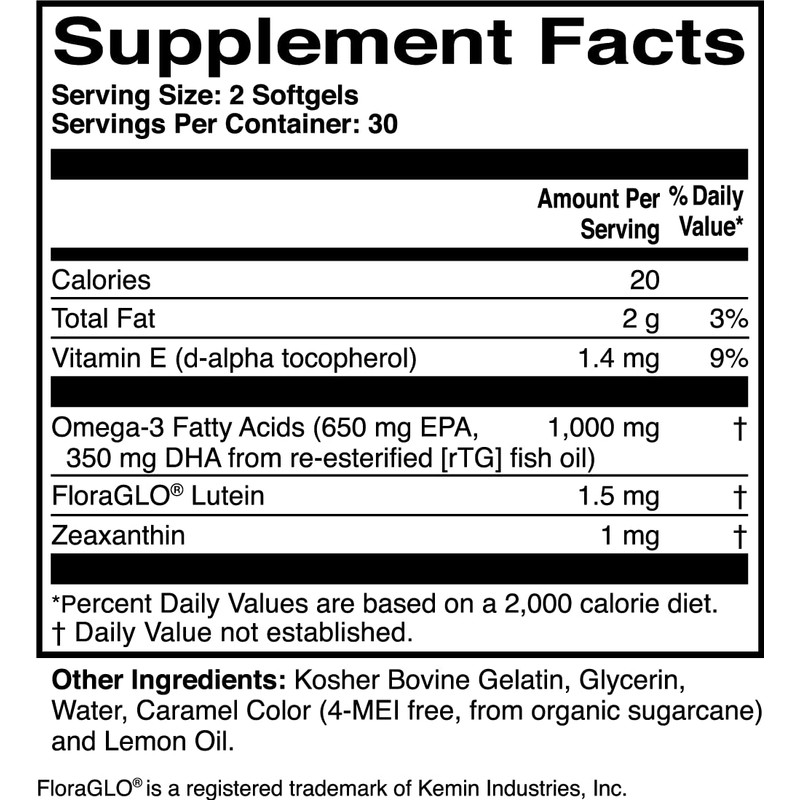OmegaAdvance Omega-3 Fish Oil – Triglyceride Form with 1000 mg EPA & DHA – Plus Lutein & Zeaxanthin – Supports Heart, Brain Health and Eye Health – Lemon Coated – 60 Softgels