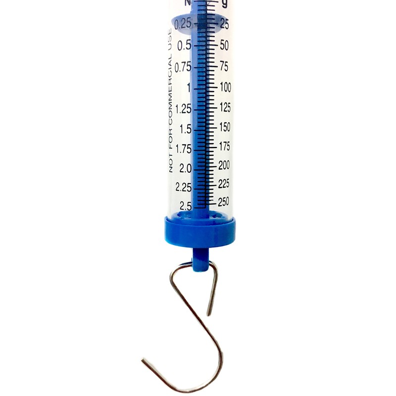 - Set of six tubular spring balance/scales with different measurement ranges for determining weight and exploring physics principles of force and mass