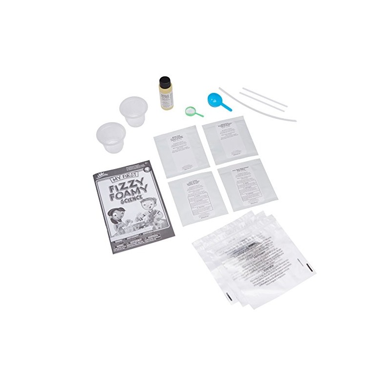 Scientific Explorer My First Fizzy Foamy Science Kit will have children young and old mixing safe powders to create solutions that foam and fizz! In this educational, make-it-yourself kit you’ll make bubbles and even make an erupting volcano! Along the way, you’ll learn some cool science about fizz and foam and how to make it bigger and better. In each of the 7 activities, your child will get to act and think like a real scientist. Foamy Science includes vegetable oil (2oz.), citric acid (0.78oz.), baking soda (1oz.), baking yeast (0.25oz.), 3 color tablets, 3 plastic bags, 2 plastic cups, 2 sticks, a magnifier, measuring spoon, straw and 11-page activity guide. Recommended for children 6 years of age and older.
