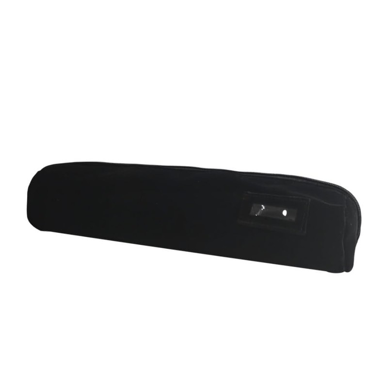 - Black velvet roll bag with zipper, clear window outside the pouch for tags