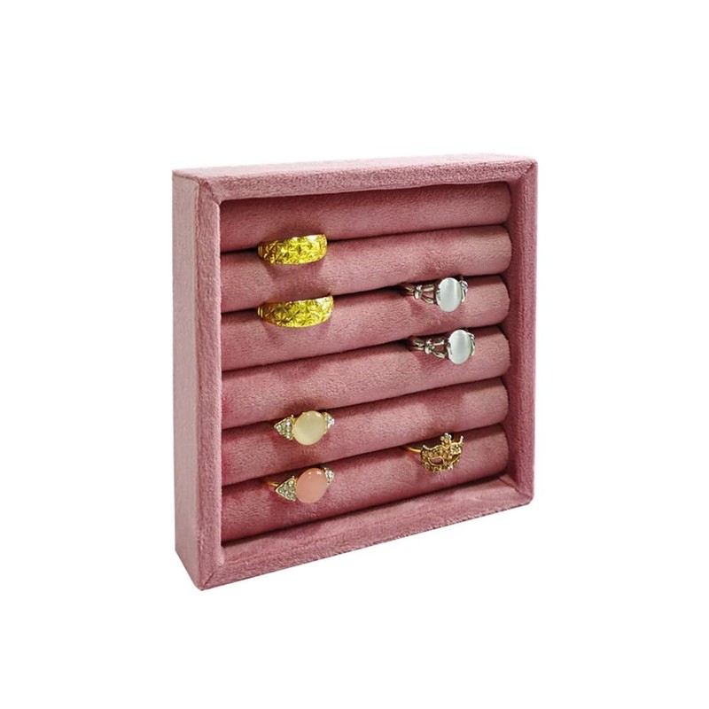 SCIKHETF Velvet 5 Slots Ring Earrings Trays Small Showcase Display Travel Ring Holder & Organizer (Pink)