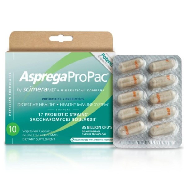 ScimeraMD® Asprega ProPac Probiotics and Prebiotics Supplement for Digestive Health and Immune System Support, 35 Billion CFUs, 10 CT