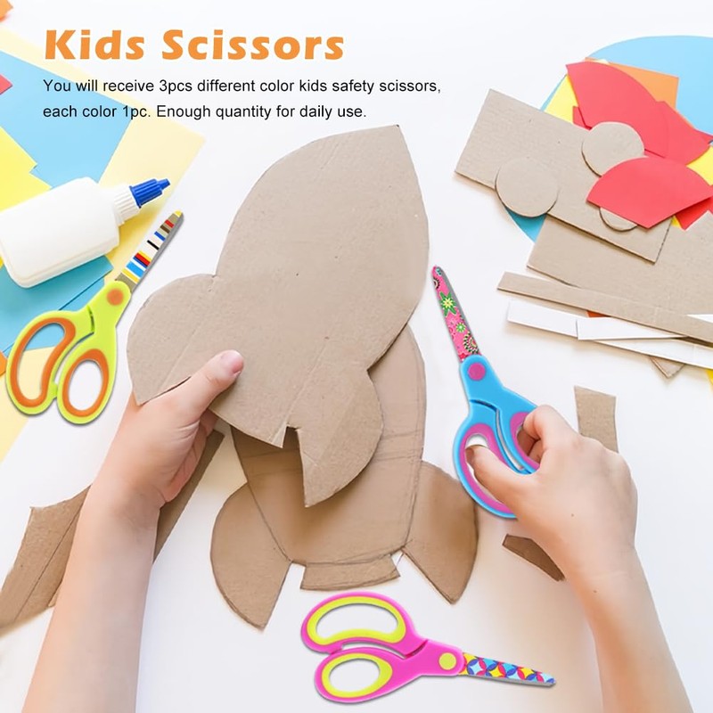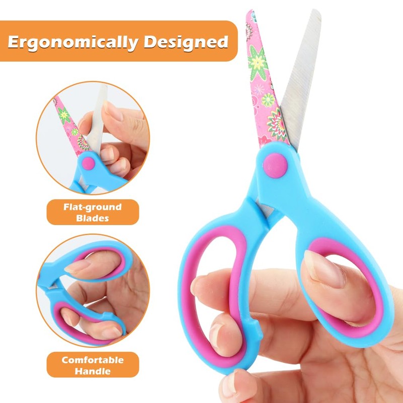 Scissors Set of 3 Pack,Safety Children Kid Scissors,Small Craft Kids Scissors with Blunt-Tip Floral Print Blade and Soft Grip,Great for Diy,Arts,Home,School Classroom Use