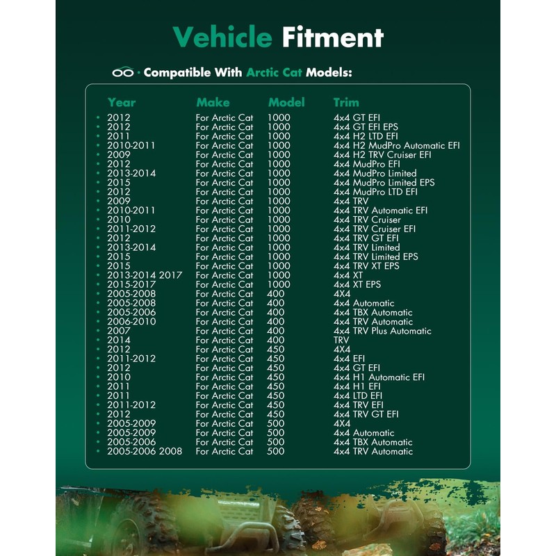 [Compatible Vehicles]: CV Axle 2009-2017 for Arctic Cat 1000,2005-2010 2014 for Arctic Cat 400,2010-2012 for Arctic Cat 450,2005-2009 for Arctic Cat 500,2009-2011 for Arctic Cat 550,2004-2011 for Arctic Cat 650,2006-2011 for Arctic Cat 700,2016-2017 for Arctic Cat MudPro 700