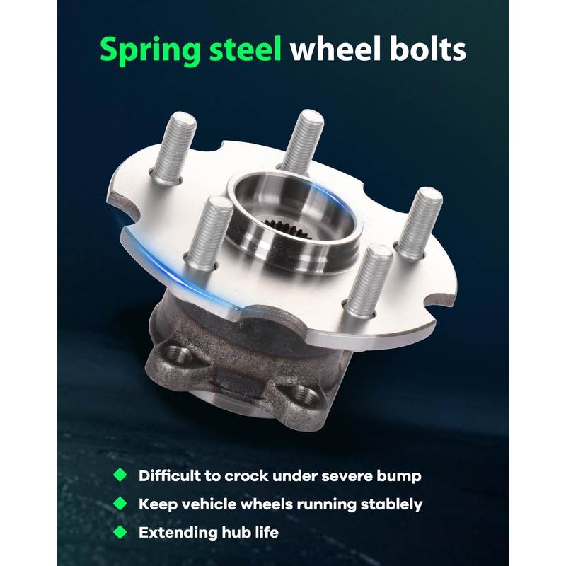 - [Reliable Quality]:The wheel hub bolts have a protective coating for easy tightening of wheel nuts.Good sealing design that lasts and minimizes noise and vibration.The front hub assembly bearing assembly helps reduce noise and provides easy maintenance.