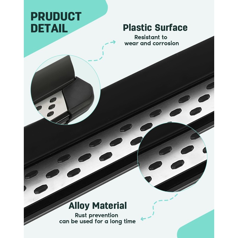 - { PREMIUM MATERIAL } - Running board rock sliders are made of aBs, aluminium alloy, pre-treated with powder coating and with stripe pattern,Excellent performance and durability.