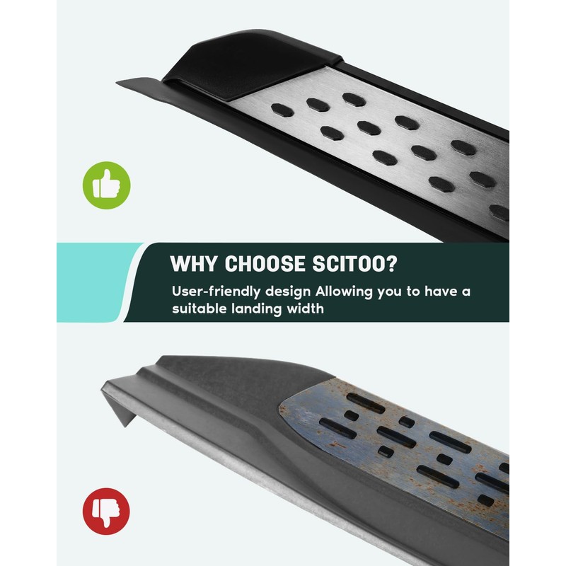 - { RUNNING BOARD ADVANTAGE } - SCITOO step bars can preserve your car's paintwork, add your own style to the exterior of your car, and help improve the driving experience for people with mobility issues.
