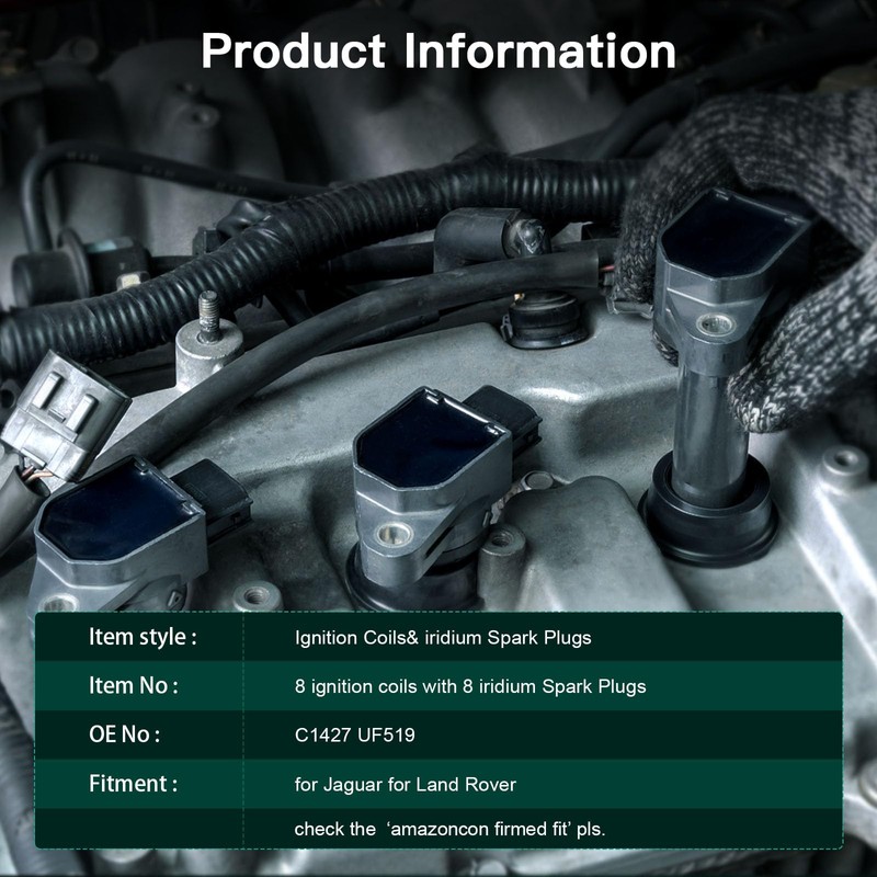 SCITOO 8 ignition coils with 8 iridium Spark Plugs for Jaguar S-Type Super V8 Vanden Plas XF XJ8 XJR XK XK8 XKR Range for Rover LR3 4.2L 4.4L C1427 UF519