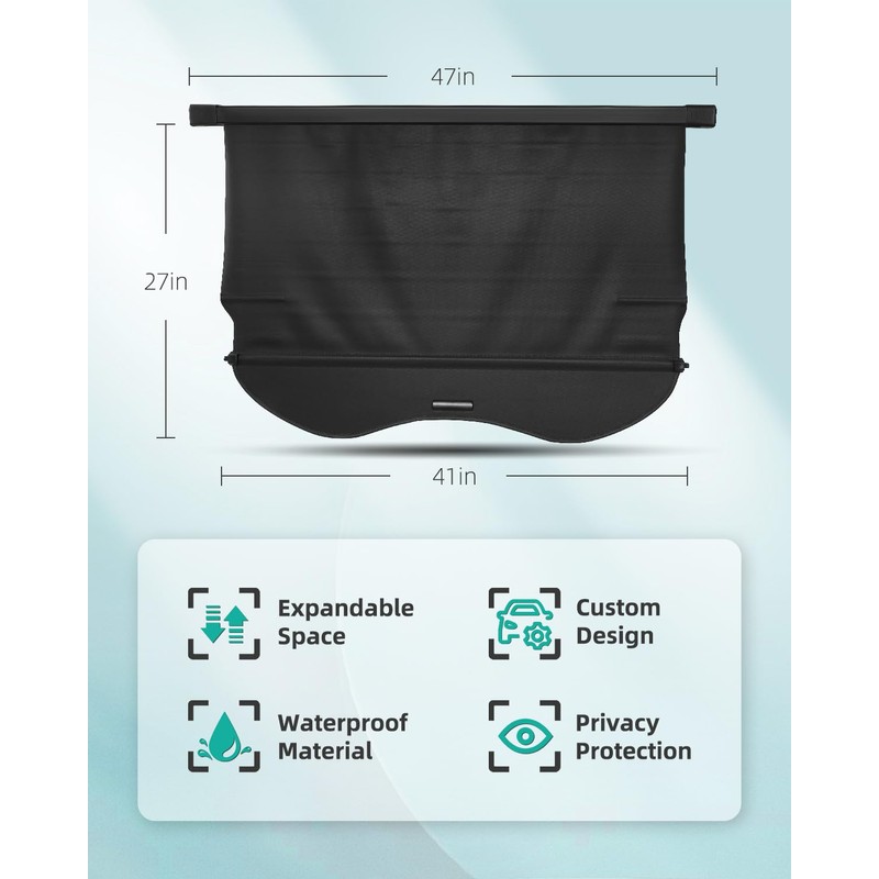 - [ Top Quality ] Built with a sturdy aluminum frame and durable PVC, the retractable rear trunk cover is tear-resistant, pressure-resistant, and easy to maintain. Plus, integrated soundproof cotton minimizes interior scratches and reduces driving noise. Perfect for enhancing both functionality and security.