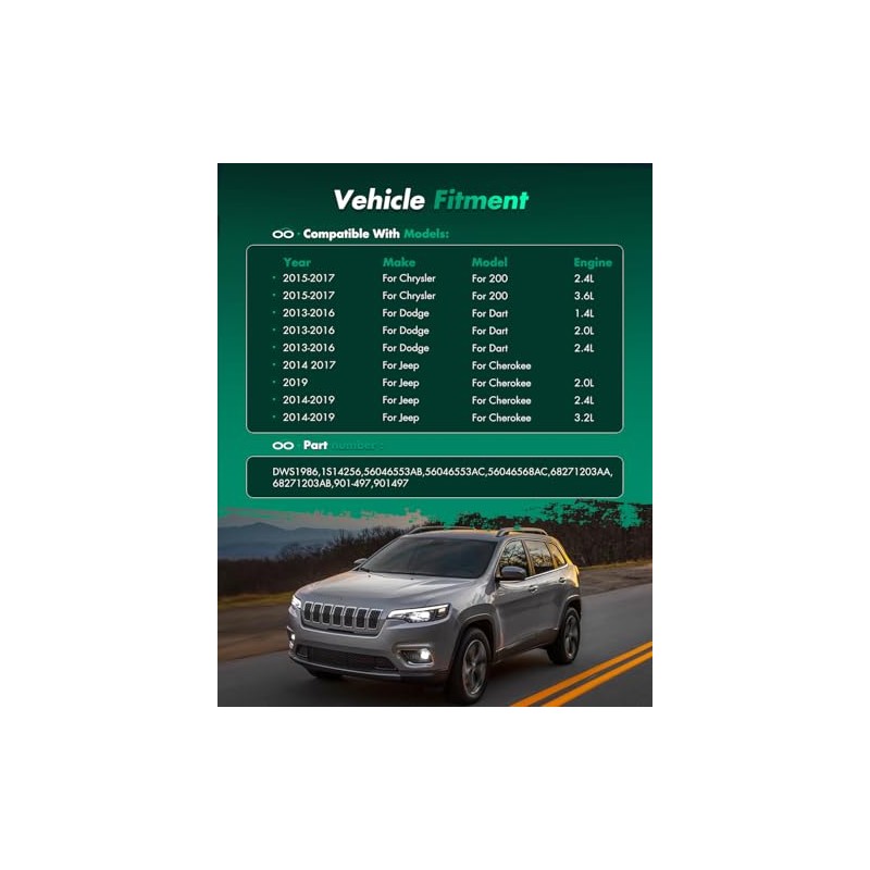 • Fitment: For Chrysler For 200 2015 2016 2017,For Dodge For Dart 2013 2014 2015 2016,For Jeep For Cherokee 2014 2015 2016 2017 2018 2019