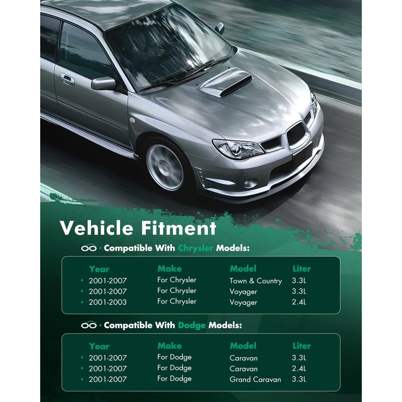 - 【Vehicle compatible2】2795 2005 for Chrysler for Voyager LX Family Comfort Edicion Especial 3.3L 06-07 for Dodge for Caravan Base 3.3L 05 for Dodge for Caravan C/V 3.3L 05-07 for Dodge for Caravan SE 3.3L 05-07 for Dodge for Caravan SXT 3.3L 05-07 for Dodge for Grand Caravan Base 3.3L 05 for Dodge for Grand Caravan C/V 3.3L 05-07 for Dodge for Grand Caravan SE 3.3L 05 for Dodge for Grand Caravan SE Plus 3.3L 05-07 for Dodge for Grand Caravan SXT 3.8L