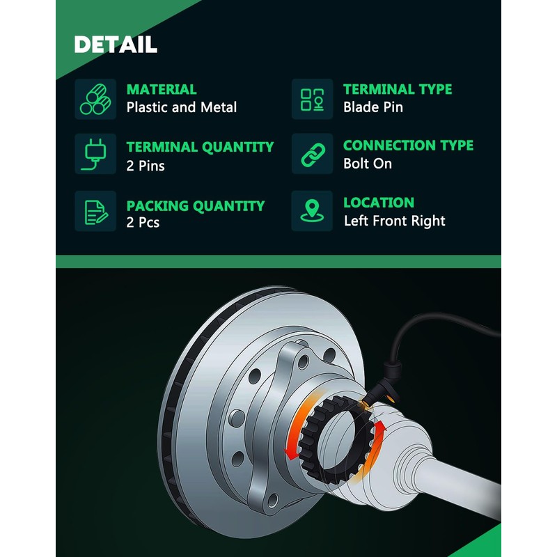- GUARANTEE: - Our package includes 2 pcs high-performance ABS wheel speed sensors. Please check if this product compatible with your vehicle or not before purchasing and contact us through sending e-mails if you have any questions