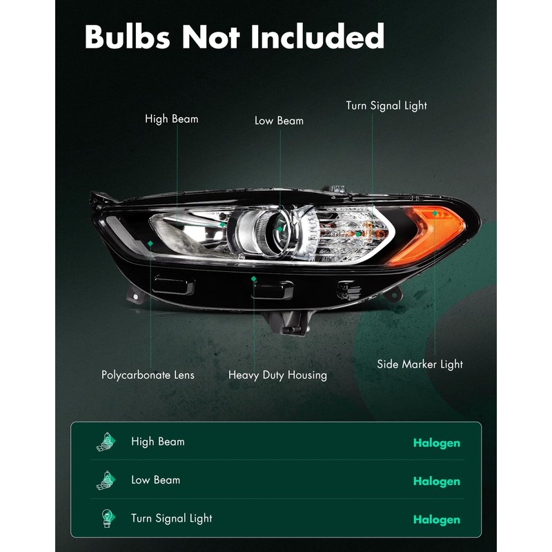 SCITOO Headlight Assembly Fit 2013-2016 for Ford Fusion Left Headlamp Black Housing Amber Reflector FO2502304