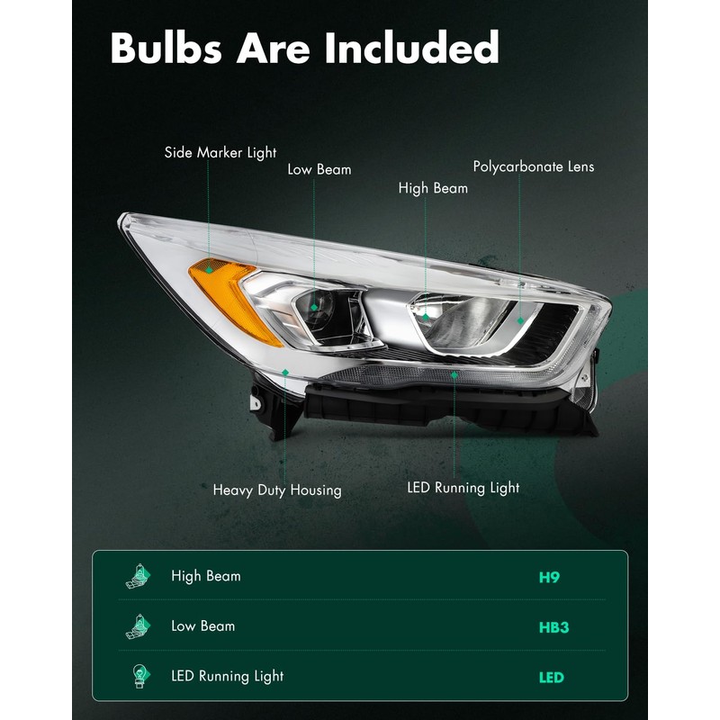 - Compatible With: SCITOO Headlight Assembly Fit 2017-2019 for Ford Escape SE