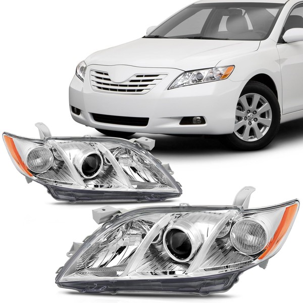 SCITOO Headlight Assembly for 2007-2009 Toyota Camry 4-Door Headlamp Chrome Housing Amber Reflector Clear Lens Driver and Passenger Side